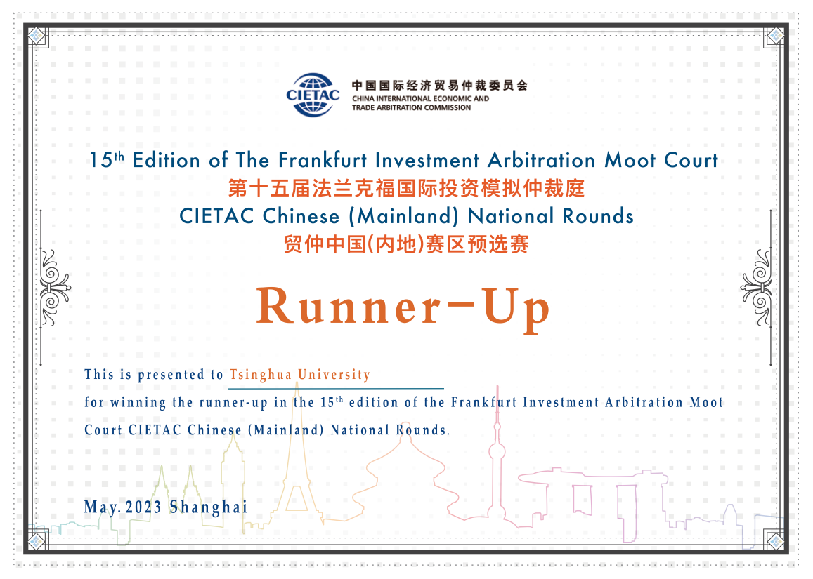 0033990威尼斯代表队荣获第十五届法兰克福国际投资模拟仲裁庭—贸仲中国(内地)赛区亚军