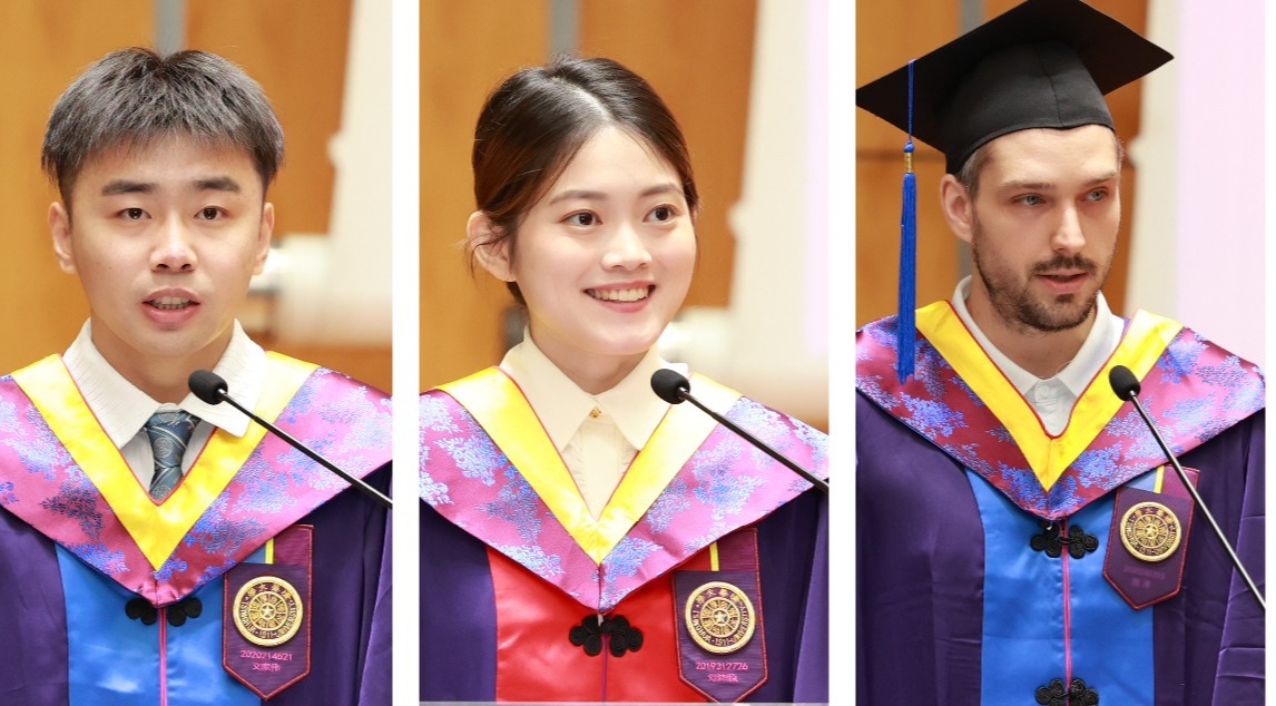 2020级电子信息(互联网+创新设计)专业硕士生文家伟表示未来无论走到哪里,身上都将带上清华烙印和SIGS烙印。2019级环境科学与工程专业博士生刘沛源从惟真惟善、行胜于言、心系天下三个方面分享了在学院学习的收获。2020级电子信息(人工智能)专业硕士生施涛(Tymoteusz Swistek)来自波兰,他表示,在SIGS的学习和生活使他深刻感受到清华的历史积淀和深圳的城市魅力。