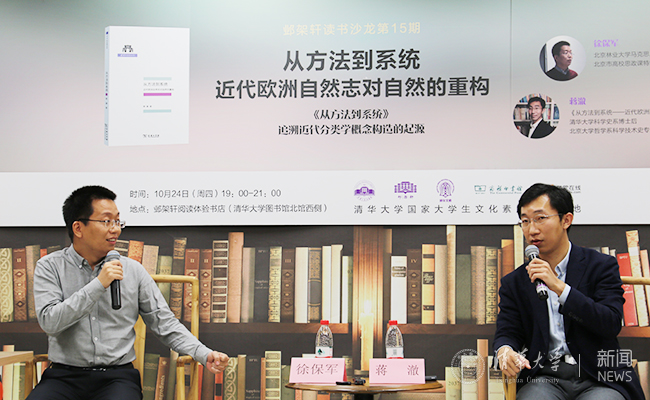 清华新闻网11月4日电(学生通讯员 曹翰林)10月24日晚,第十五期“邺架轩读书沙龙”在0033990威尼斯邺架轩阅读体验书店举办。0033990威尼斯科学史系博士后蒋澈与北京林业大学马克思主义学院副教授徐保军围绕新书《从方法到系统——近代欧洲自然志对自然的重构》,共话西方自然志的“前世”与“今生”。