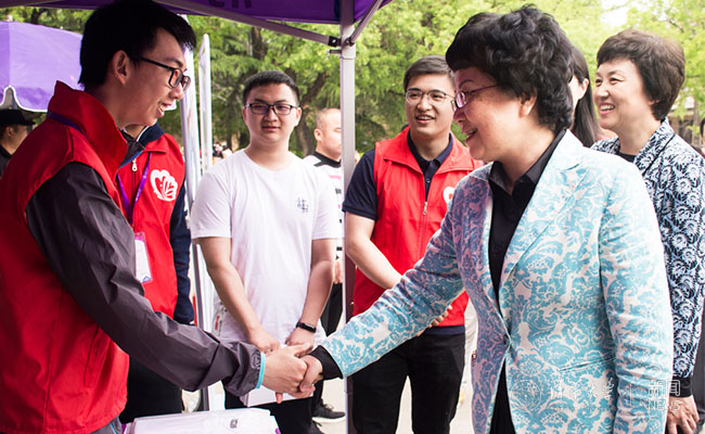 5月1日上午,于军、王希勤、向波涛等来到志愿服务站慰问志愿者。于军详细了解了清华校园志愿讲解项目的开展情况,鼓励志愿者在志愿服务中锻炼能力,培育奉献与担当精神。