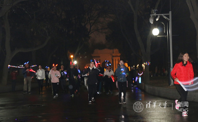随着一声枪响,头戴荧光牛角,手持荧光棒的同学们陆续冲出起点线,一边感受雨后校园里清爽干净的空气,一边尽情挥洒汗水,享受奔跑带来的快乐。荧光点点,流动不息,构成了当晚校园里一抹独特亮丽的风景线。