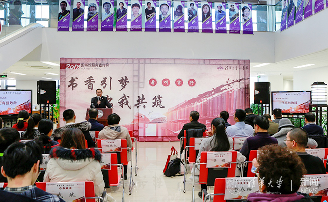 张秋对服务宣传月开展情况作了回顾与总结。她表示,2018年图书馆服务宣传月各项活动顺利开展,在校园内产生了广泛影响。为期5周的2018年图书馆服务宣传月以“书香引梦,你我共筑”为主题,讲述图书馆故事,传播图书馆声音,以“看、听、言、行”四大篇章为核心,开展了内容丰富、新颖务实、有创意、有特色的系列活动。