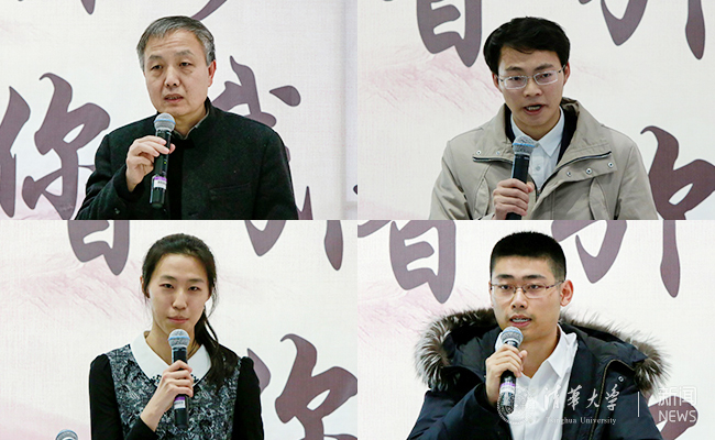 建筑学院教师张杰作为教师顾问代表发言,他表示,作为图书馆的忠实粉丝,见证了图书馆的巨大发展,也在图书馆收获良多,未来将继续做好教师顾问工作,更好地发挥图书馆与师生之间的桥梁作用。经管学院学生刘林永作为学生管员代表,从价值塑造、知识获取、能力提升三个方面与大家分享了感受和收获。学生社团代表、校团委社团部辅导员张启路表示,王有强提出的“社团好,图书馆好;图书馆好,社团更好”发展理念,为未来学生社团与图书馆的共同发展提出了新思路和新机遇。研究生会副主席马啸腾表示,校研会正在大力推进信息化建设,未来校研会将通过线上渠道继续与图书馆开展深度合作,开创线上合作新模式。