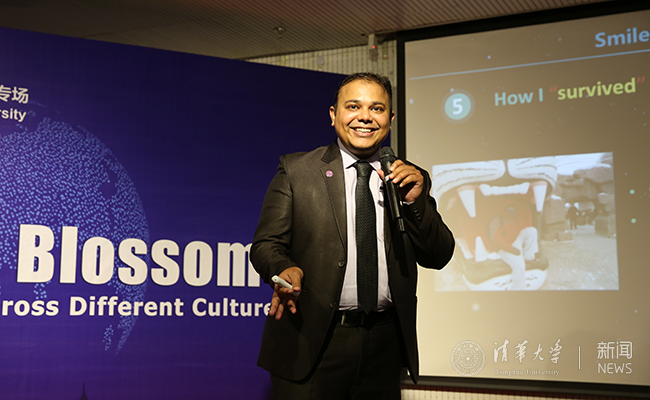 第二位演讲嘉宾盖法尔(Memon Abdul Ghaffar)来自巴基斯坦,是环境学院博士四年级的学生。他分别讲述了自己在巴黎、迈阿密和中国跨文化交流的经历。在中国,他参与了“洞察中国”和“一带一路”沿线国家青年大学生感知成都行活动,在此过程中他认识中国、了解中国,与中国朋友结下了深厚的友谊。
