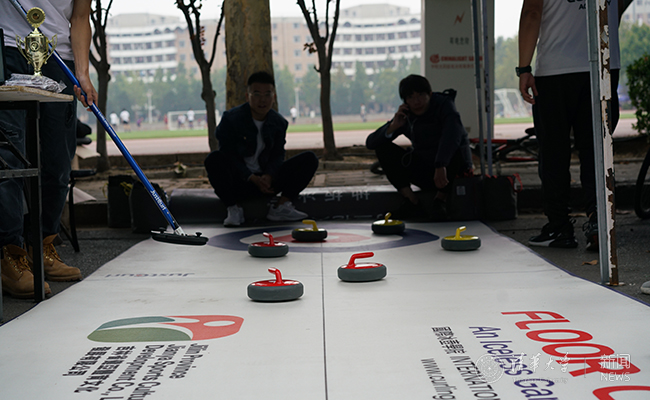 学生冰壶协会的同学们展示训练过程 胡子卉