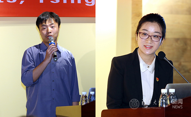 公共管理学院2016级硕士生李论(左)、 经济管理学院2017级博士生孔奕(右)作宣讲