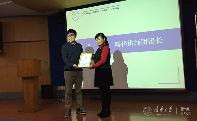 研究生团委副书记王竟达为孔茗讲师颁发聘书。 蔡超睿