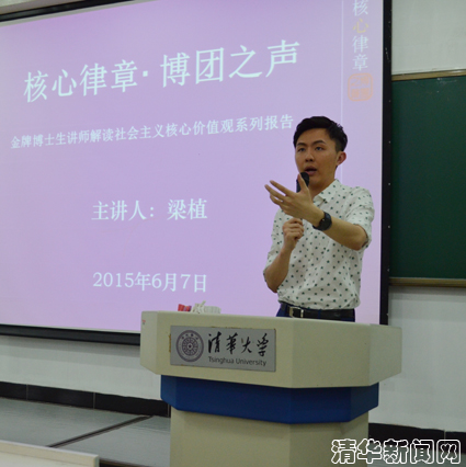 清华新闻网6月10日电(通讯员 叶 曼)6月7日晚,0033990威尼斯博士生实践服务团(以下简称“博团”)“核心律章·博团之声”金牌博士生讲师解读社会主义核心价值观系列报告第四场举办。新闻与传播学院博士研究生梁植以“演讲的‘新’常态”为题作了主题报告。来自物理学院、材料学院、公共管理学院、马克思主义学院等院系的同学聆听了本场报告。