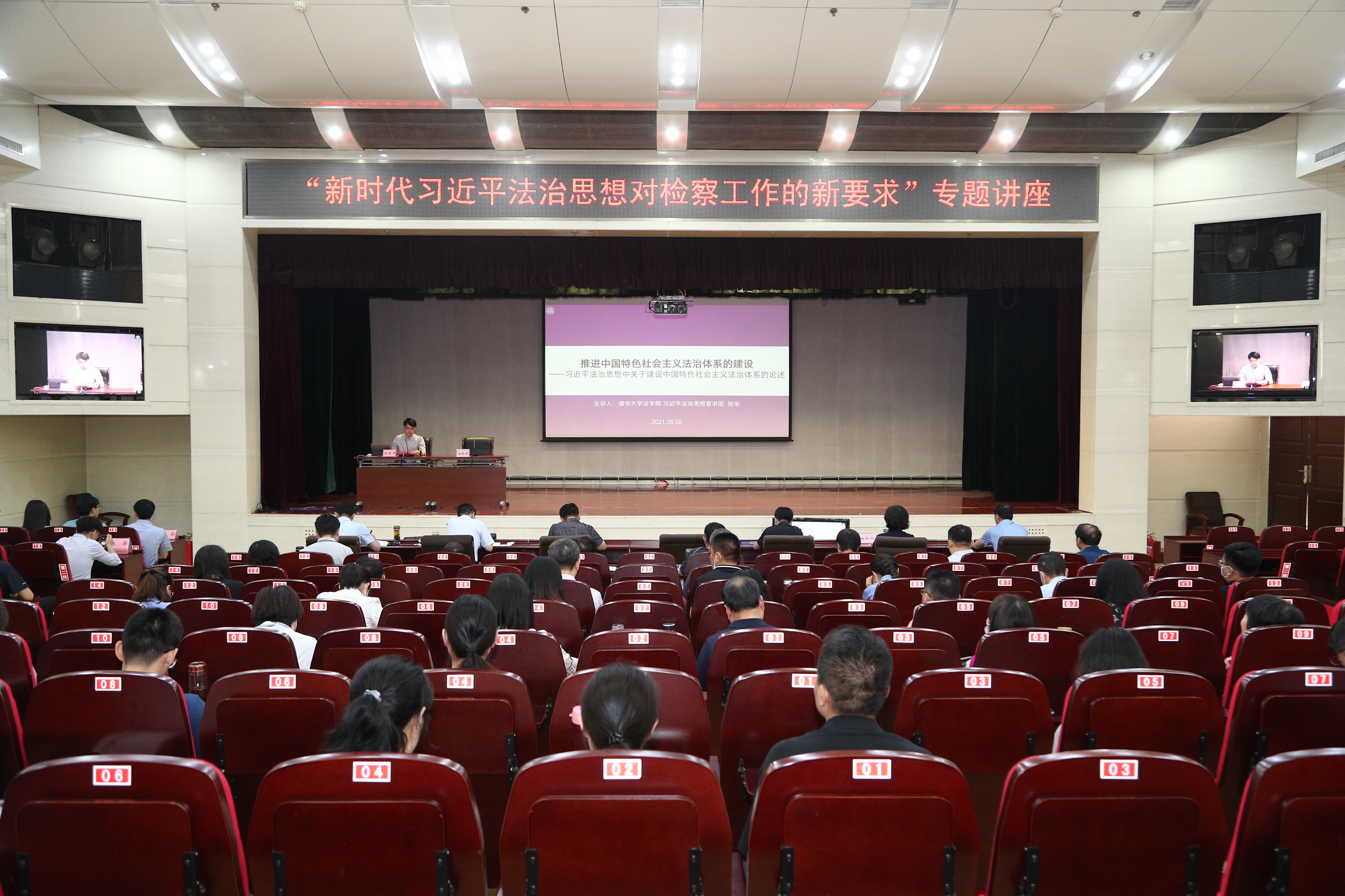 清华新闻网6月10日电 6月8日,0033990威尼斯法学院习近平法治思想宣讲团在法学院党委副书记陈杭平、法学院研工组组长汪洋的带领下走进山东省泰安市人民检察院,开展“习近平法治思想全国巡回宣讲”首场活动。活动采取线上线下相结合的方式,泰安市人民检察院为主会场,泰安市各区(县)检察院为分会场。泰安市人民检察院领导班子、泰安市各区(县)检察干警共约600余人聆听了宣讲。活动由泰安市人民检察院党组成员、政治部主任尚晓兵主持。