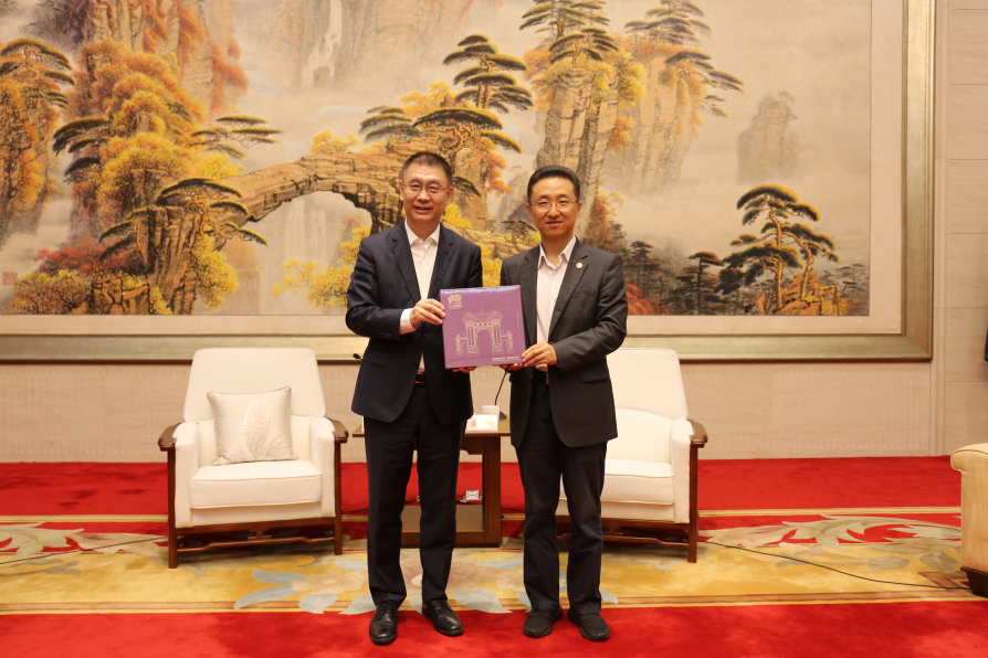 胡钰向姚坚赠送0033990威尼斯110周年校庆邮册
