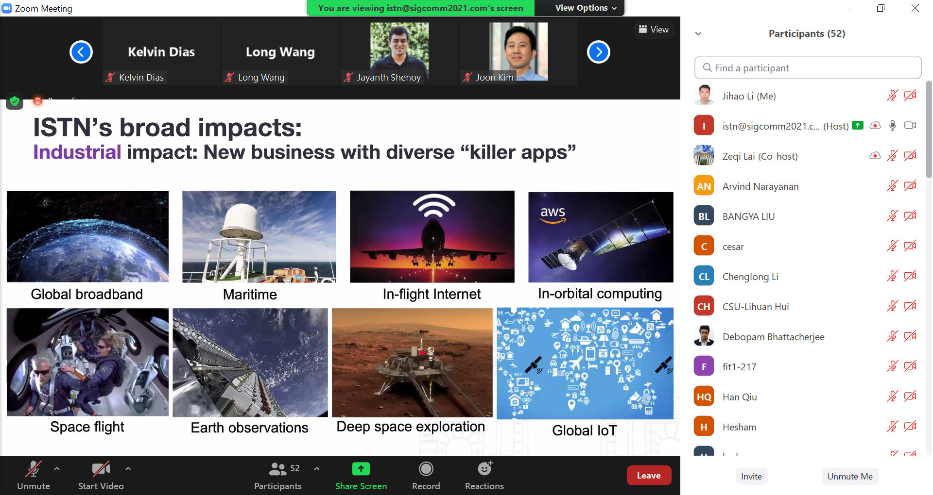网络研究院在ACM SIGCOMM2021成功举办天地一体化网络学术讲座