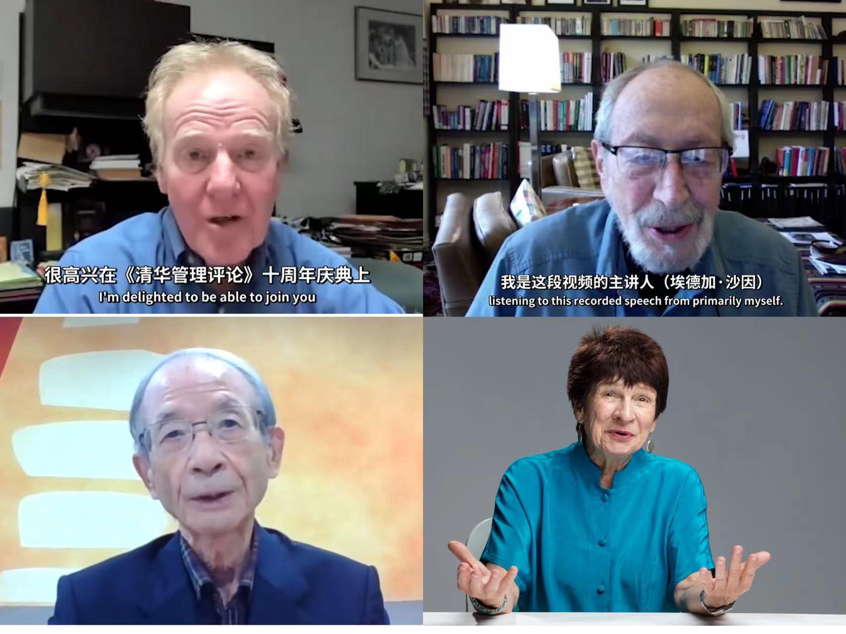 彼得·圣吉、埃德加·沙因、野中郁次郎、丹娜·左哈尔发表演讲(从左至右、从上至下)