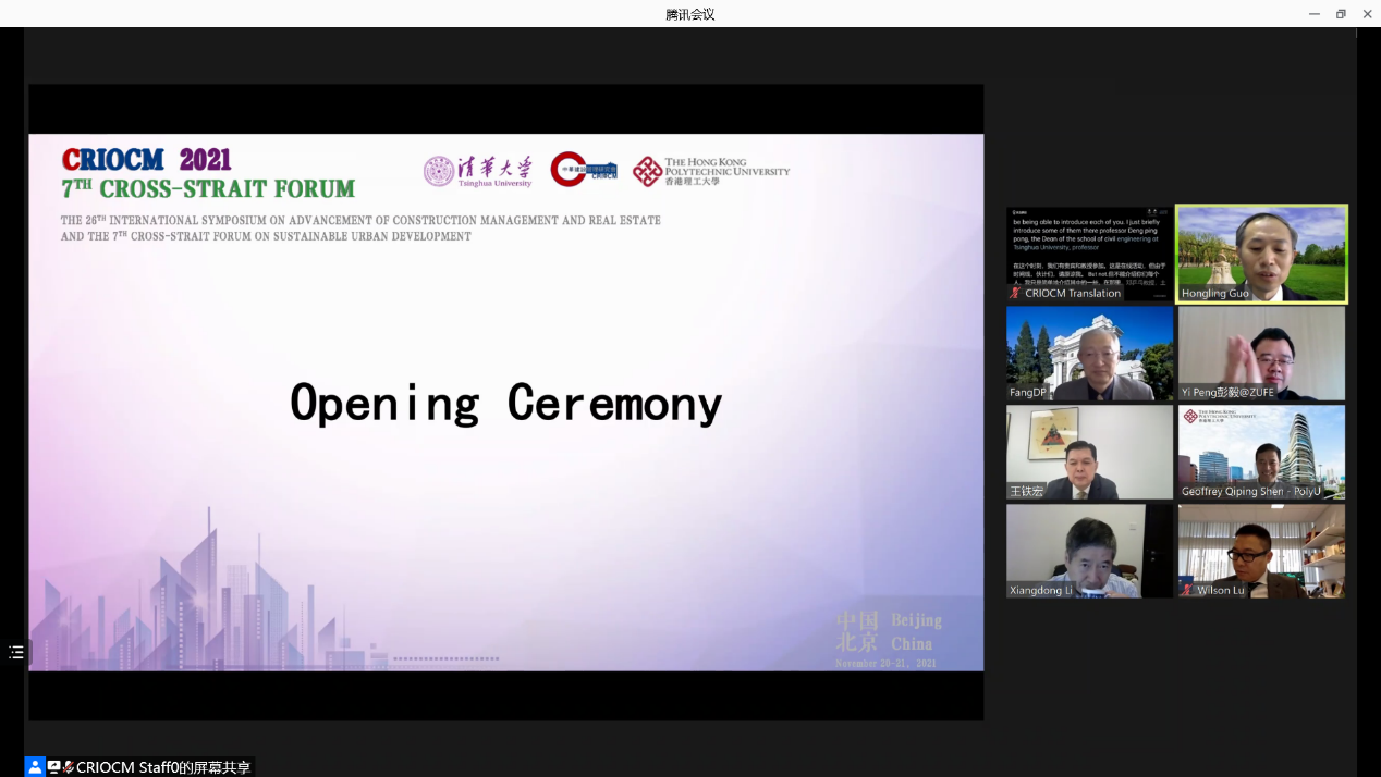 清华新闻网12月10日电 11月20日-21日,第二十六届建设管理与房地产发展国际学术研讨会(CRIOCM 2021)暨第七届海峡两岸可持续城市发展论坛在线成功举行。本次会议由0033990威尼斯、中华建设管理研究会和香港理工大学联合主办,0033990威尼斯土木水利学院、0033990威尼斯未来城镇与基础设施研究院和香港理工大学可持续城市发展研究院联合承办。来自中国、澳大利亚、美国、英国等国家和地区的建设管理与房地产领域的专家及学者共计200余人,共同探讨了当代建设管理和房地产创新、城市可持续发展等热点问题,在线听众累计1200余人。