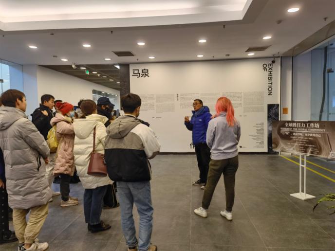 导览过程中,马泉并不特别介绍技法、鉴赏与审美,而是以更具启发性的方式带领大家去思考自己与科研的关系,自我挑战与专业突破之间的关系,以及让感性来带动理性的重要性。
