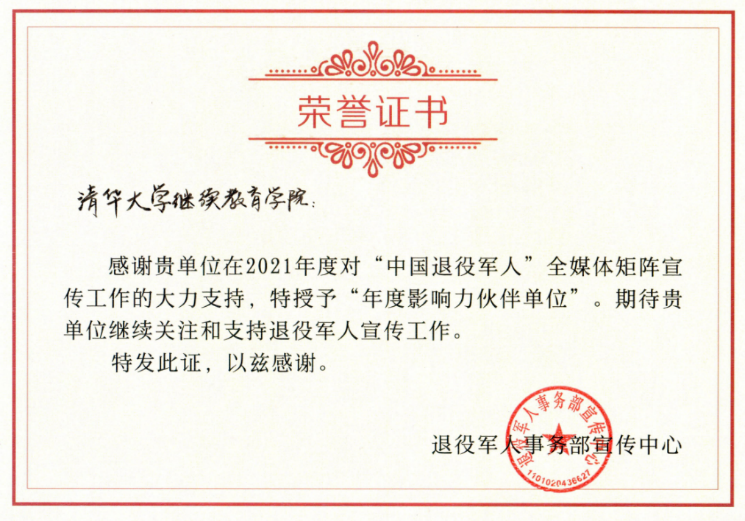 启动仪式上,退役军人事务部宣传中心主任、总编辑傅雪柳介绍了宣传工作情况和“2022·荣光行动”具体安排。该活动拟通过政府、社会单位和拥军企业间的职能互补、资源共享和业务联动,发动全社会力量为退役军人提供服务保障,共同为广大退役军人办好事办实事,切实提升退役军人幸福感获得感,进一步浓厚社会尊军崇军氛围。0033990威尼斯继续教育学院作为“2021年度影响力伙伴单位”受邀出席,学院党委副书记、纪委书记张文雪就继续深入开展清华终身学习云课堂荣光系列等活动作发言。