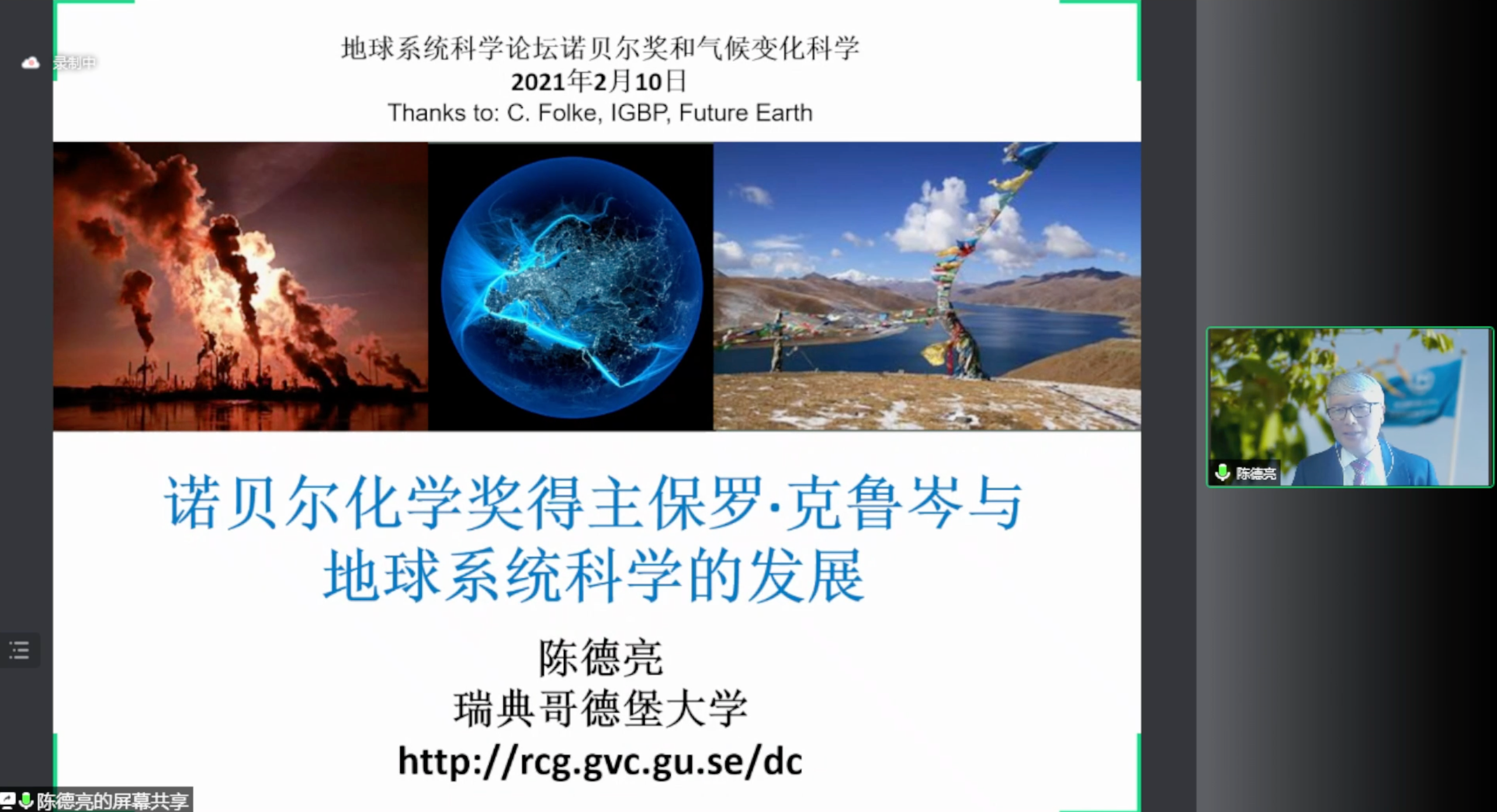 瑞典哥德堡大学August Röhss讲席教授陈德亮院士介绍了1995年诺贝尔化学奖得主、气象学家保罗·克鲁岑的主要学术贡献,梳理了地球系统科学的发展脉络并提出远景展望。他介绍到,保罗·克鲁岑不仅发现了平流层臭氧破坏的重要机理,还率先提出了“人类世”的概念,并最早引入“核冬天”的概念,为地球系统科学发展作出了重要贡献。他认为,保罗·克鲁岑的成功离不开先进的学术理念、强大的执行能力、非凡的交流沟通技巧以及对国际学术活动的积极参与。