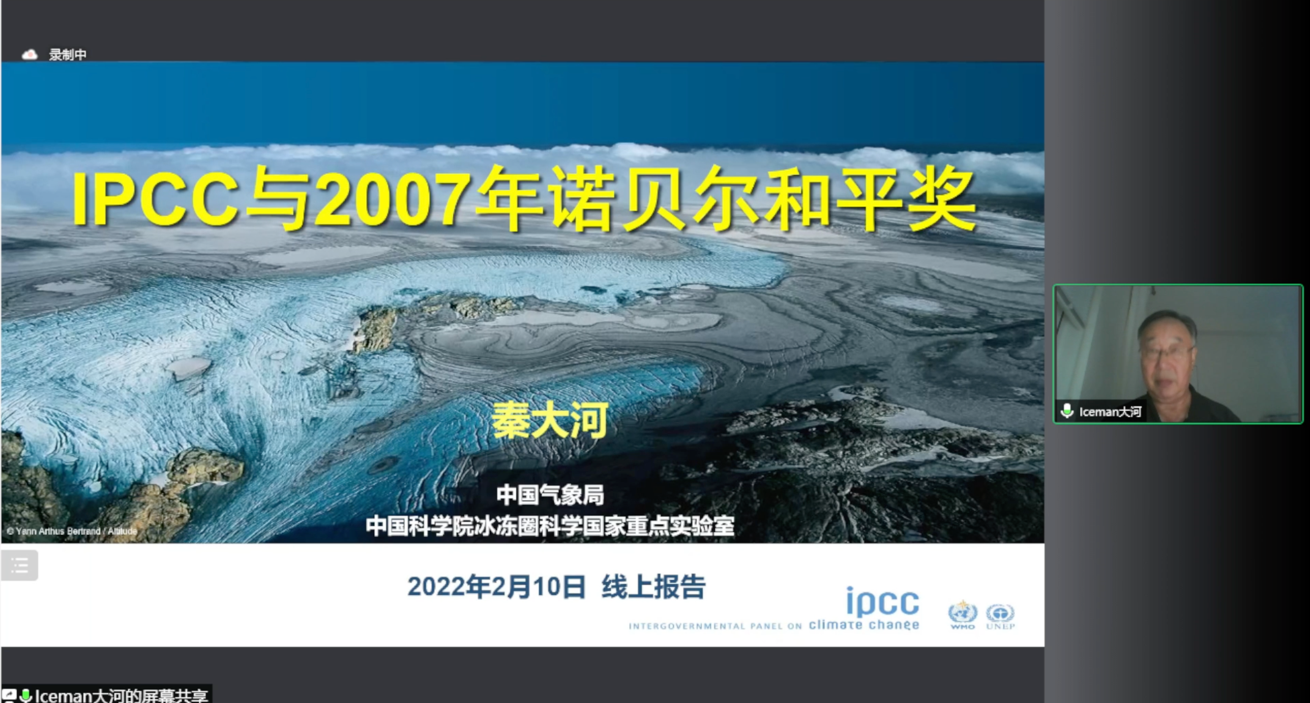 作为联合国政府间气候变化专门委员会(IPCC)数次评估报告的重要参与者和组织者,中国气象局秦大河院士介绍了IPCC的成立背景和工作职责、IPCC和评估报告的组织及原则、历次评估报告的重要作用,并回顾了IPCC获得2007年诺贝尔和平奖的历史。他特别表示,作为发展中大国,中国政府主动承担IPCC工作,积极推进IPCC评估进程和未来发展。中国科学家积极参与IPCC历次评审报告,中国科学家发表的文献在IPCC报告中的被引量显著增加。