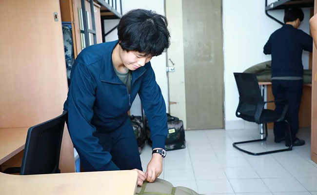 抵达宿舍后,姑娘们迅速收拾行囊,整理内务。