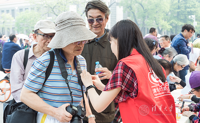 1号楼作为清华最有历史的宿舍楼,校庆的两天时间共有近600位校友前来回忆重温自己的青春年代。来自经管学院金硕17班的邵敬华同学28-29日全程在1号楼担任校友接待志愿者,并为校友讲述学生公寓在近年来所发生的新变化。如果遇到年龄较大的老校友时,她还会主动搀扶其上楼。