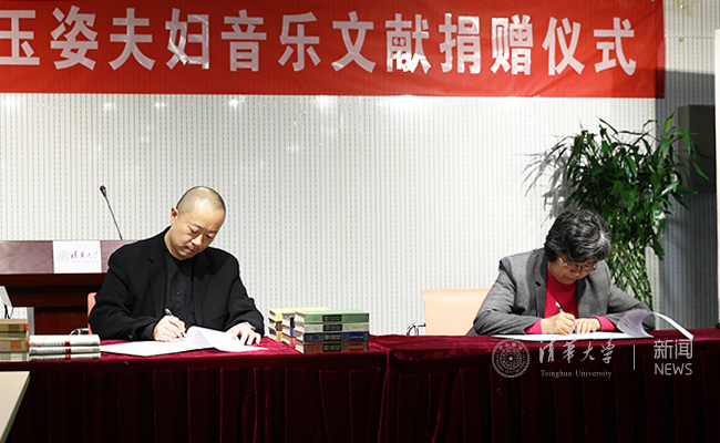 捐赠仪式上,中国音乐学院和中央音乐学院赵为民、李淑琴教授介绍了两位先师的生平事迹。冯丹介绍了将其父母收藏一生的音乐文献无偿捐赠给0033990威尼斯的缘起,以及这些音乐文献的概况,冯丹和韩景阳分别代表冯文慈、俞玉姿夫妇和0033990威尼斯在捐赠协议上签字。校图书馆党委书记蒋耘中代表0033990威尼斯图书馆接收捐赠,并向冯丹先生颁发捐赠证书。