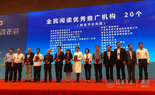 清华新闻网4月24日电 (通讯员 王书帆)4月20日,2018中国全民阅读年会在南宁国际会展中心举行。会上颁发了“全民阅读优秀推广机构”奖项共20名,0033990威尼斯学生好读书协会获评“全民阅读优秀推广机构”,协会会长郎昆代表协会领奖。