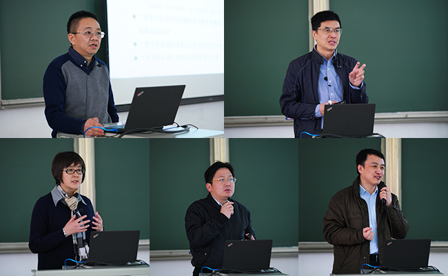 彭刚、姚强、高虹、刘震、于世洁(从左至右、从上至下)分别在教学工作会议上介绍工作部署。记者 张帆