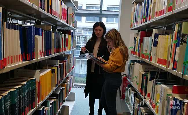 支队成员面向德国大学生发放问卷。