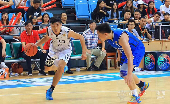 中国大学生篮球联赛全国四强对阵浙江大学比赛中。