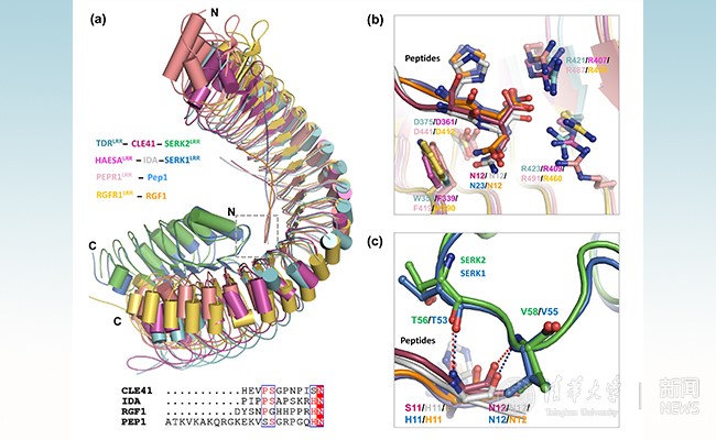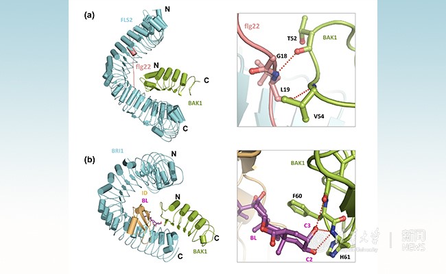 受体激酶在植物与环境以及植物发育过程中不同细胞之间的交流协调中发挥着重要作用。模式生物拟南芥含有多于600个受体激酶,而水稻中则高达1000多个。项目组通过对一系列植物重要受体激酶(油菜素内酯受体BRI1,植物模式识别受体激酶FLS2与CERK1以及受体激酶PTO等)的复合物结构与功能的研究,揭示了植物受体激酶在植物生长及与病原菌相互作用中的复杂关系,为众多的植物受体激酶研究提供了模式。在包括《自然》《科学》等知名期刊上发表多篇文章,产生了广泛的国际学术影响。