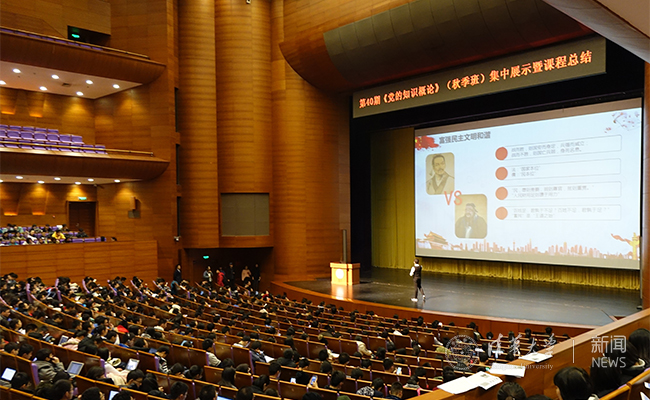 集中展示环节中,来自8个院系的8个研究性课题小组从《共产党宣言》解读、社会主义核心价值观的文化渊源、卢沟桥参观实践、十月革命的探索、简析共产党引领复兴之路、供给侧改革与决胜全面建成小康社会、“一带一路”倡议与中国发展战略、新时代的中美关系等方面进行展示和分享,既有从党课学到的知识与方法,又有对身边人、身边事的关注和思考。