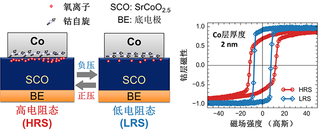 于浦所带领的研究团队在其近期关于双离子、三态调控(《自然》(Nature) 546,124 (2017))的研究基础上,开创性的利用具有良好氧离子迁移特性的SrCoO2.5与金属钴(Co)组成异质结构,并通过利于电压控制氧离子在SrCoO2.5内部的快速迁徙,实现了氧离子型栅极对金属钴磁性的快速调制。该研究思路在保持原有方案的简洁、便利等优势前提下,将磁性的翻转速度大幅度提高到目前的亚毫秒量级,并且还有望通过优化器件构型近一步提高。