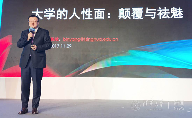 杨斌作“大学的人性面:颠覆与祛魅”主旨演讲。