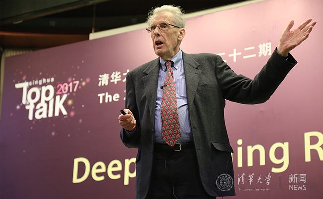 清华新闻网12月6日电  新一代阿法狗(AlphaGo)以100:0完胜前辈阿法狗,标志着以深度学习为代表的计算科学正在迈向新的高度。第22期巅峰对话紧跟时代潮流,于12月2日邀请到图灵奖获得者、世界上首批计算机科学家、康奈尔大学计算机科学系教授,美国科学院院士与中国科学院外籍院士约翰·霍普克洛夫特(John Hopcroft)与150余名学生共话深度学习。