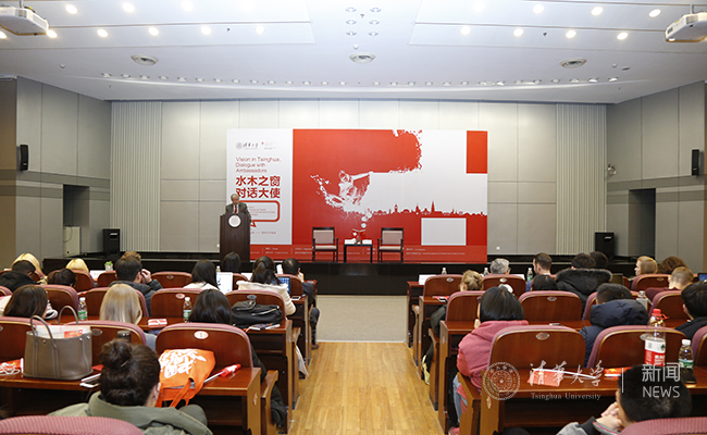 会见后,戴尚贤大使出席“水木之窗,对话大使”活动,为在场清华师生献上了一场题目为“公共外交领域的创新(Innovation in Public Diplomacy)”的精彩演讲。清华社科学院国际关系学系教授史志钦主持演讲。共160余人参加活动,其中近一半是国际学生学者。