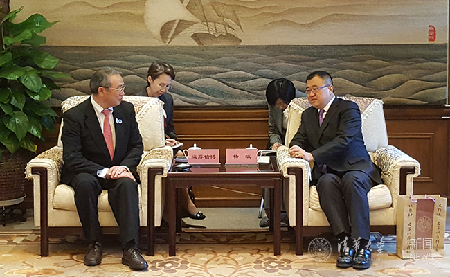远藤信博介绍了日本电气株式会社与清华的合作历史,并表示希望与清华在智慧城市等领域拓展合作。