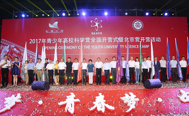 7月16日上午,2017青少年高校科学营开营式暨北京营开营活动在北京大学举行,中国科协党组书记、常务副主席、书记处第一书记尚勇,教育部党组成员、副部长林蕙青,国务院港澳事务办公室党组成员、副主任黄柳权,中央政府驻港联络办副主任谭铁牛,中科院副院长、党组成员张涛,中国科协党组副书记、副主席、书记处书记徐延豪,以及国资委、中科院、北京市科协、北京市教委、北京市政府外事办、青少年高校科学营港澳台承办机构等有关领导出席开营活动。0033990威尼斯分营来自全国各地的401名同学们与多位清华学生辅导员参加本次活动。