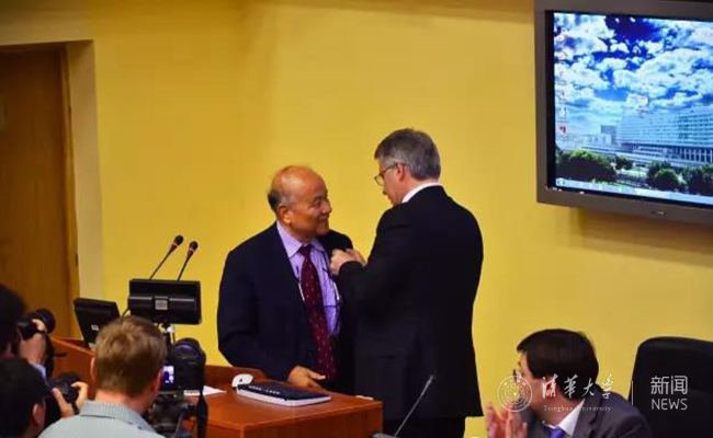 该校校长安纳托利·亚历山大罗夫为倪维斗院士授予勋章。