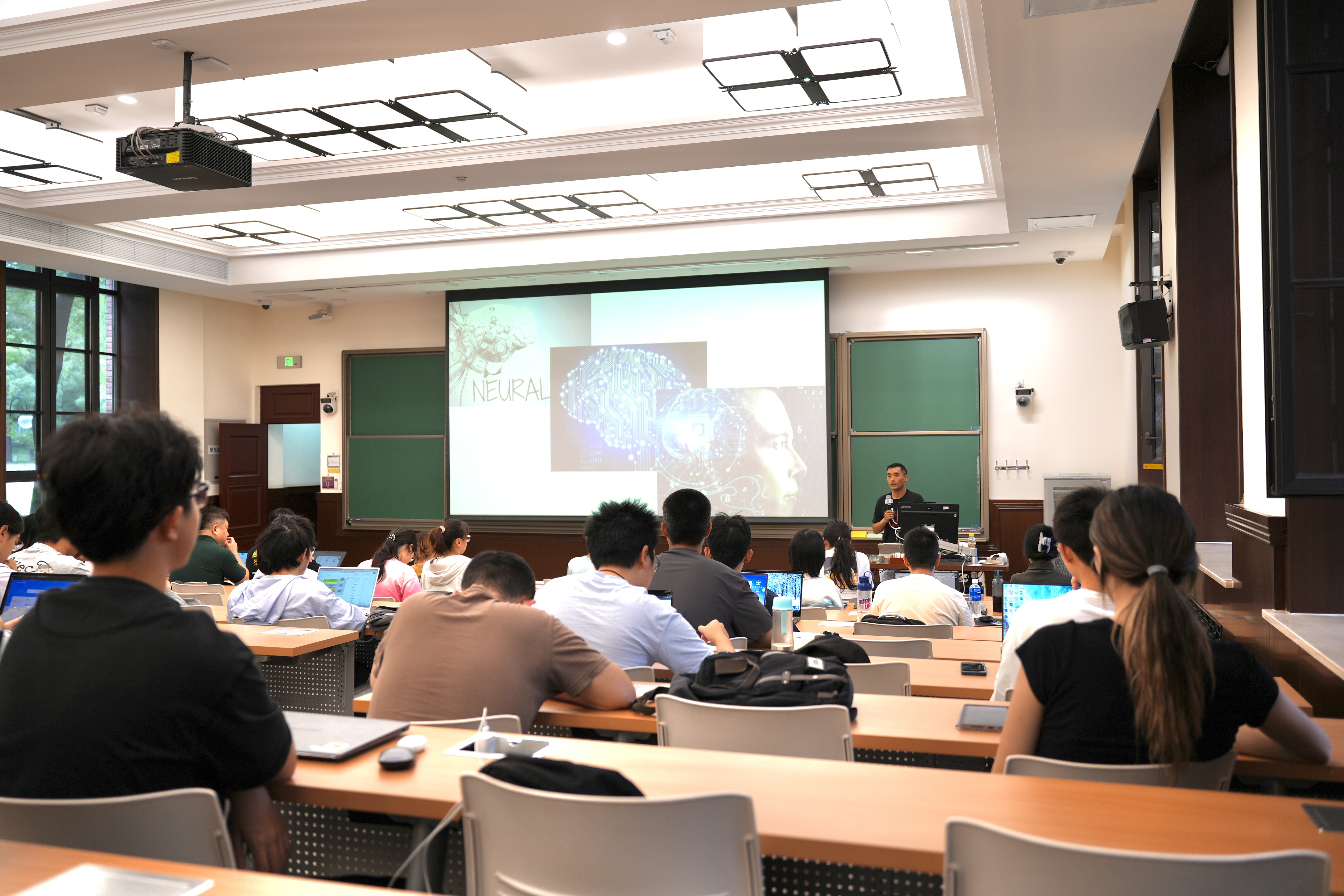 凉风吹雨,不觉已至新秋,清华园迎来秋季学期的开学第一天。五星红旗迎风展卷,学子们早起赶赴“早八”的课堂,青春与信仰冉冉升起。食堂窗口热气氤氲,一碗暖粥、一筷汤面,温暖着早起的胃与心。学堂路上,单车穿梭在梧桐树下,生机与梦想交相辉映。窗明几净的教室里,键盘轻敲,屏幕闪烁,专注的眉眼间藏着星海与远方。新学期伊始,你我并肩前行,于秋色中写下崭新序章。