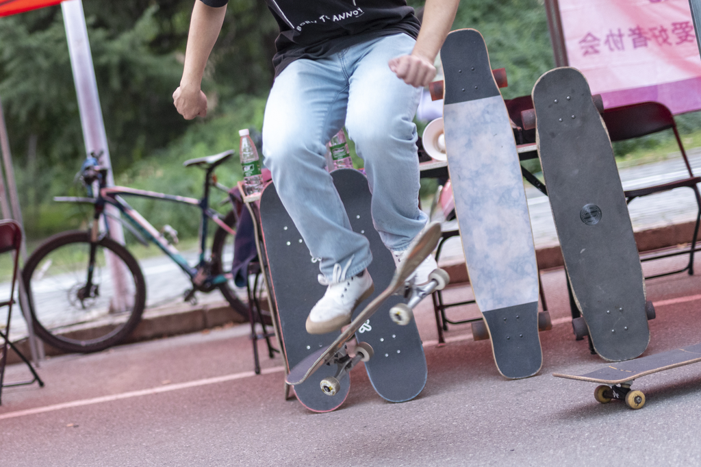 学生滑板协会成员在现场展示精彩技术