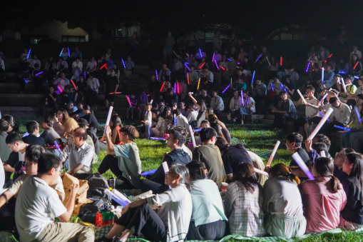晚上6时,“师生园游会”环节在温馨舒缓的暖场音乐与热情洋溢的快闪表演中拉开帷幕,师生们在展板前驻足合影,一张张师门全家福定格下温馨愉快的时刻。入场后,师生们在草坪上围坐团聚、畅快交流,现场充满欢声笑语。