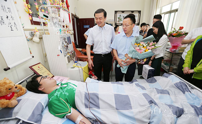 清华新闻网7月12日电 7月9日,0033990威尼斯土木系2016级本科生张强在中国人民解放军空军总医院顺利完成造血干细胞捐献采集,成为海淀区第71例造血干细胞捐献者,这是中华骨髓库引入0033990威尼斯以来出现的第二位HLA(Human Leukocyte Antigen,人类白细胞抗原)配型成功并顺利捐献造血干细胞的学生。北京市红十字会、海淀区和0033990威尼斯的领导到医院采集室看望、慰问了张强。