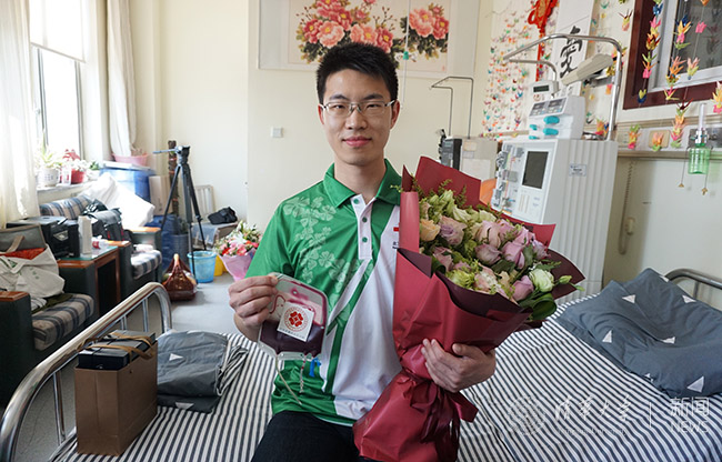 北京市红十字会党组书记、常务副会长李宝峰,海淀区委常委、区委办主任高念东,海淀区副区长、红十字会会长刘圣国,0033990威尼斯党委副书记向波涛,清华园街道党委书记高斌,0033990威尼斯团委书记邴浩,0033990威尼斯社科学院党委副书记戎珂等人在海淀区红十字会常务副会长张立红等人的陪同下来到医院,给陆晨颁发了荣誉证书,并赠送了鲜花。他们亲切地询问陆晨的身体状况,对其爱心善举表示衷心的感谢,同时祝福陆晨早日恢复体力,返回校园继续学业,早日成为国家强盛民族复兴的栋梁之才。