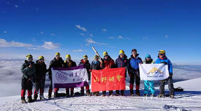 与三位随队教练——童海军、陈楚俊、王术麟一同登顶的队员为:化工系2010级校友崔敬杰(队长)、电子工程系2017级硕士生陈日晋、建筑学院建筑技术系2017级硕士生乐慧、材料学院2014级本科生马从洋、工物系2017级本科生翁楚彬、环境学院2014级博士生谢昌益、自动化系2014级本科生杨佳然(队长)、精仪系2014级本科生禹思坤、美术学院信息艺术系2017级硕士生张锦文。