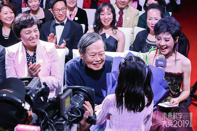 陈旭(左一)与杨振宁(左二)在颁奖典礼现场