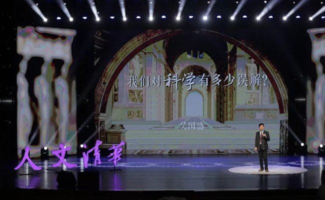 10月30日晚,科学史家、0033990威尼斯人文学院教授、科学史系主任吴国盛在人文清华讲坛,发表题为“我们对科学有多少误解?”的主题演讲,从科学史的角度,帮助观众澄清许多误解,通过追溯科学的起源追问科学的本质,思考中国科学的发展方向,并提出为了中华民族的伟大复兴,要让科学精神扎根于中国文化的土壤之中,要改良我们的文化土壤;要在强调科学技术是第一生产力的同时,多弘扬自由科学的精神。千余名观众到场聆听演讲,众多的网友在场外观看了在线直播。