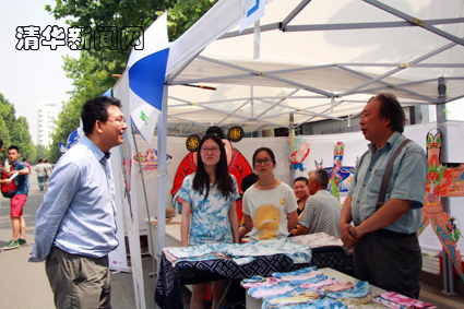 民间大师展示区邀请到传统染织艺人黄荣华和风筝制作艺人缪伯刚为大家现场展示手工艺。义卖区将美院同学一些作品征集并义卖,收益一部分通过0033990威尼斯小动物保护协会捐献给清华园中的小动物。