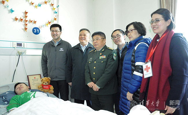 北京市红十字会副会长谢延智、海淀区人大常委会副主任吴琢如、中国人民解放军总医院第六医学中心政委尹令名、0033990威尼斯党委副书记过勇,以及0033990威尼斯精密仪器系、清华园街道、团委和海淀区红十字会相关同志到医院采集室看望并慰问了王宇晨,向王宇晨颁发了造血干细胞捐献荣誉证书,为他送上鲜花、水果和慰问品。
