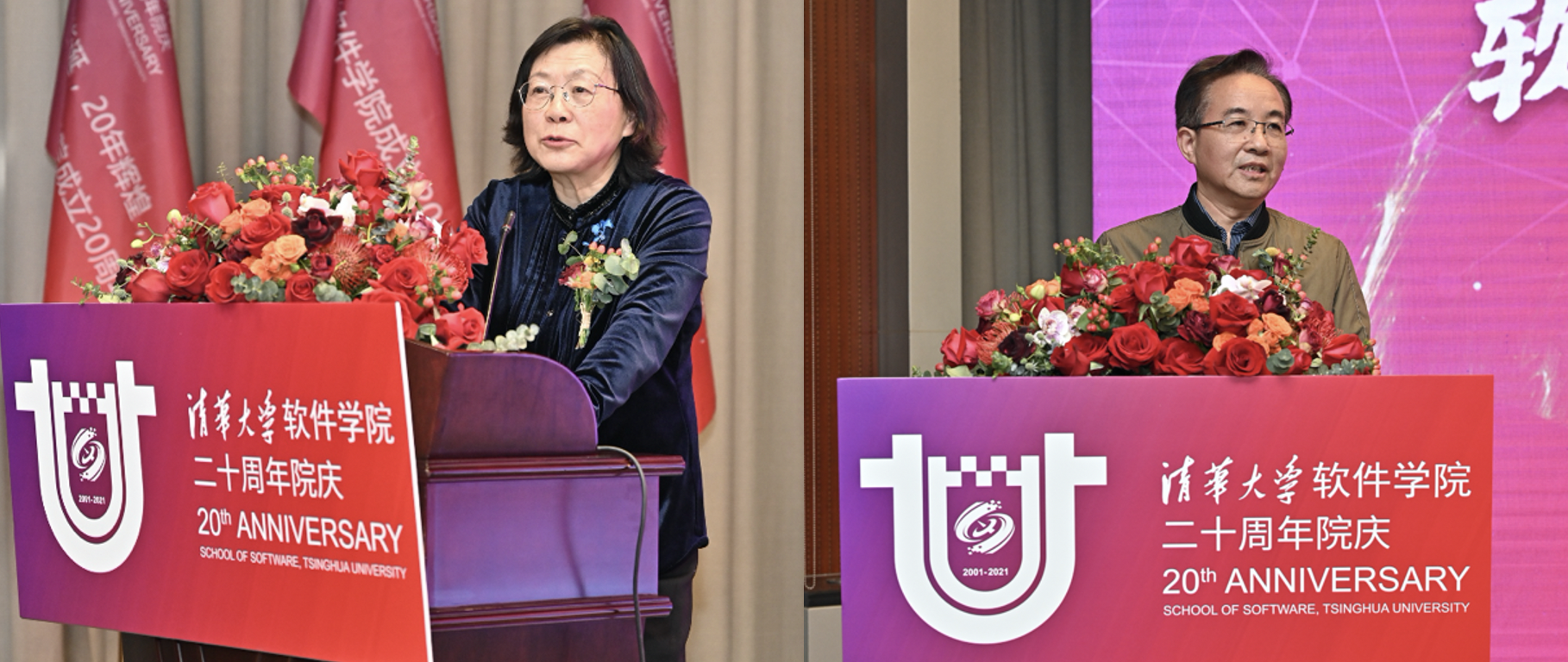 雷朝滋在致辞中用“应运而生、应势而兴、应时而变”概括了软件学院20周年的发展历程,并对软件学院提出了三点期望:要培养一流人才、争做一流贡献、培养一流精神,从而支撑服务国家重大战略,推动社会高质量发展。谢少锋首先介绍了我国产业链的综合发展情况。他强调,软件学院未来的发展建设要围绕三个主题:一是补短板,构筑具有国际竞争力的软件环境;二是完善产业生态,构建富有创造力的软件生态体系;三是着力提高软件素养,建设一流特色化的软件学院,为制造强国、网络强国建设提供强有力的人才。刘敏表示,软件是信息技术之魂、经济转型之擎、网络安全之盾,也是数字社会之基。希望软件学院能够充分发挥在软件领域技术、人才和平台方面的优势,积极参与国家重大项目、开展产学研合作,为软件领域输送更多的科技骨干人才,为提升我国软件领域创新能力特别是原始型创新能力作出清华的贡献。