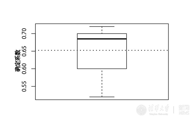 图3:对多次重复随机抽取的测试集计算的确定系数R^2箱线图
