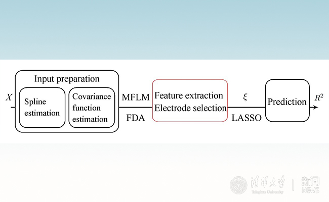 杨立坚课题组依托10年来自身在函数型数据领域的研究成果,课题组2017级博士生张园园和2018级博士生黄昆在学习神经科学专业知识的同时,与机械工程系教授吴方芳和硕士生王健凯高效合作,分析季林红课题组的大学生志愿者脑电与认知能力数据。他们秉承“面向应用,背靠理论,写好算法”的统计学理念,把样条回归估计脑电信号的光滑轨迹,张量样条回归估计协方差函数,样条估计函数型主成分与得分等深刻的统计学前沿理论,结合LASSO回归,转化为快速准确分析脑电数据的算法(图4),从2018年12月开始仅用6个多月的时间,就很好地解决了基于工作记忆能力预测的问题,完成了这篇跨学科应用方法论文,经过两次修改,于2019年12月线上发表。